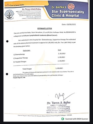 ABCD Foundation is a dedicated non-governmental organization (NGO) that has been working tirelessly for the past 8 years to improve child health and well-being across India. With a strong focus on supporting underprivileged children in medical crises, the foundation has helped countless families access critical healthcare services. Today, we are reaching out with an urgent appeal to support Mast. Siyon Benander, a 2.5-year-old child from Kolhapur who is battling cancer. ABCD Foundation is committed to standing by Siyon and his family during this difficult time, but we cannot do it alone. We need your support—every donation, big or small, can help save Siyon’s life and bring hope to his loved ones.